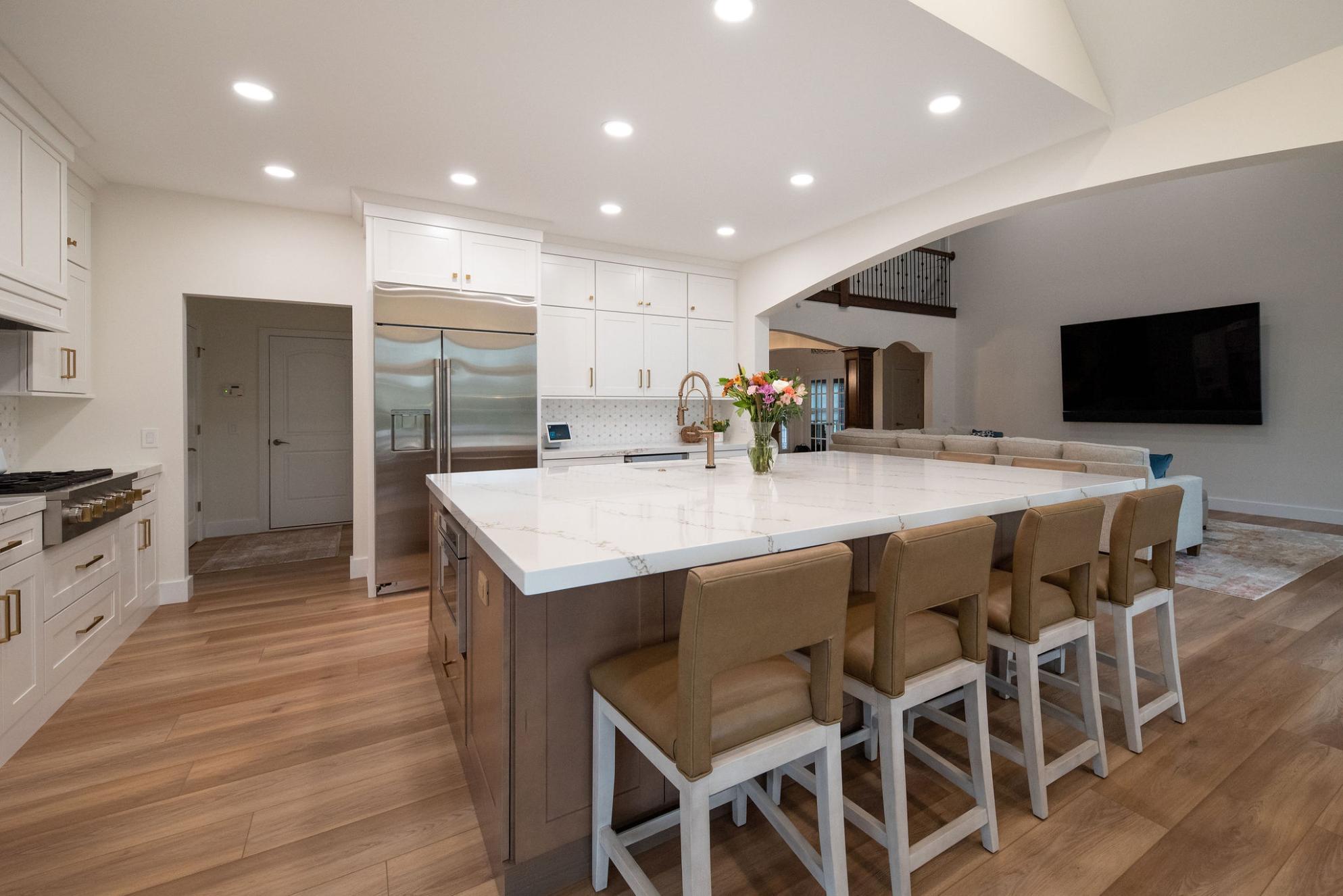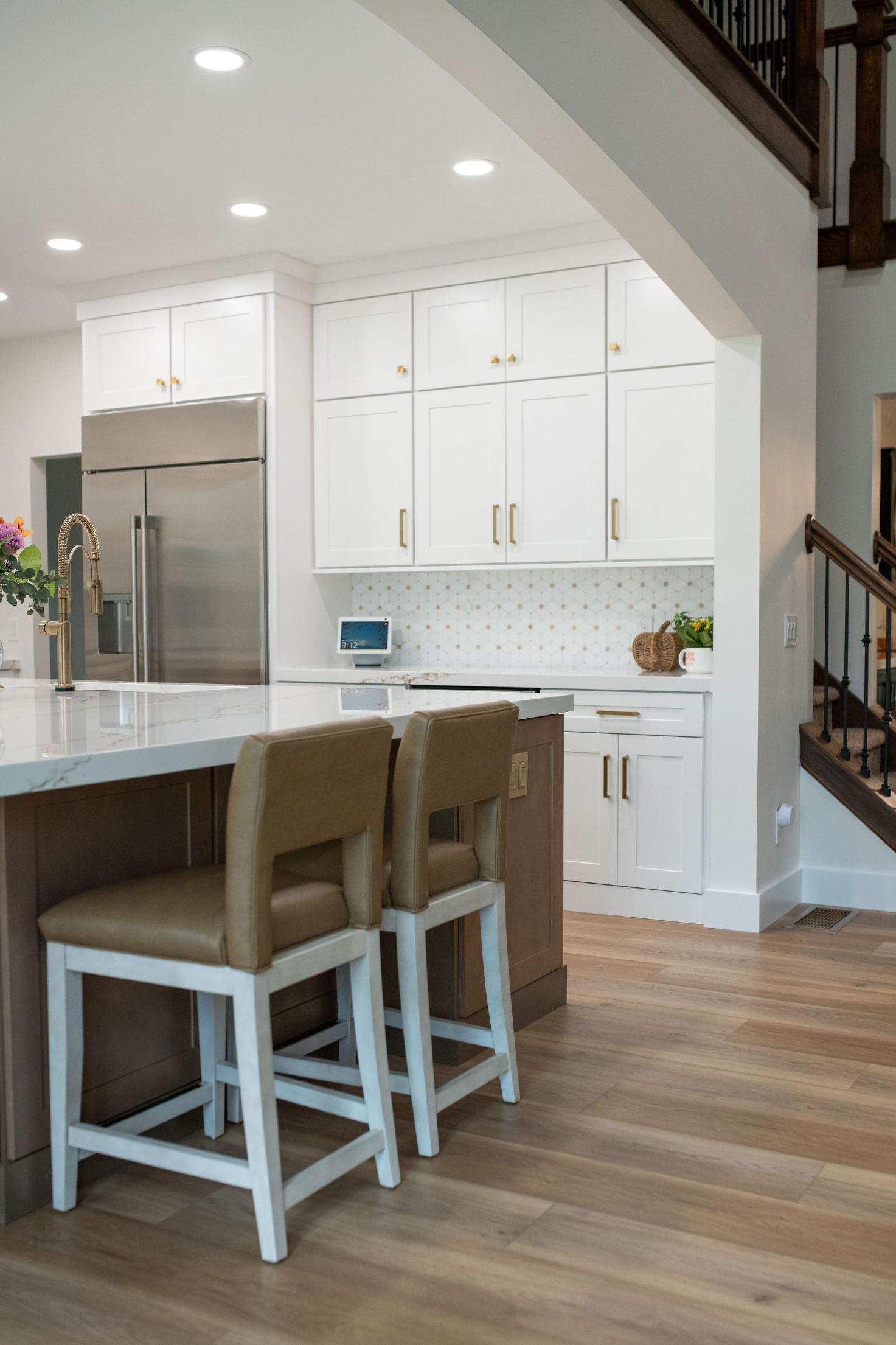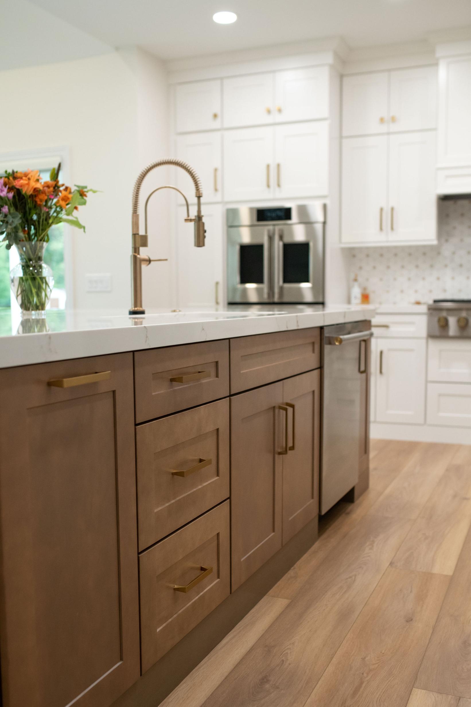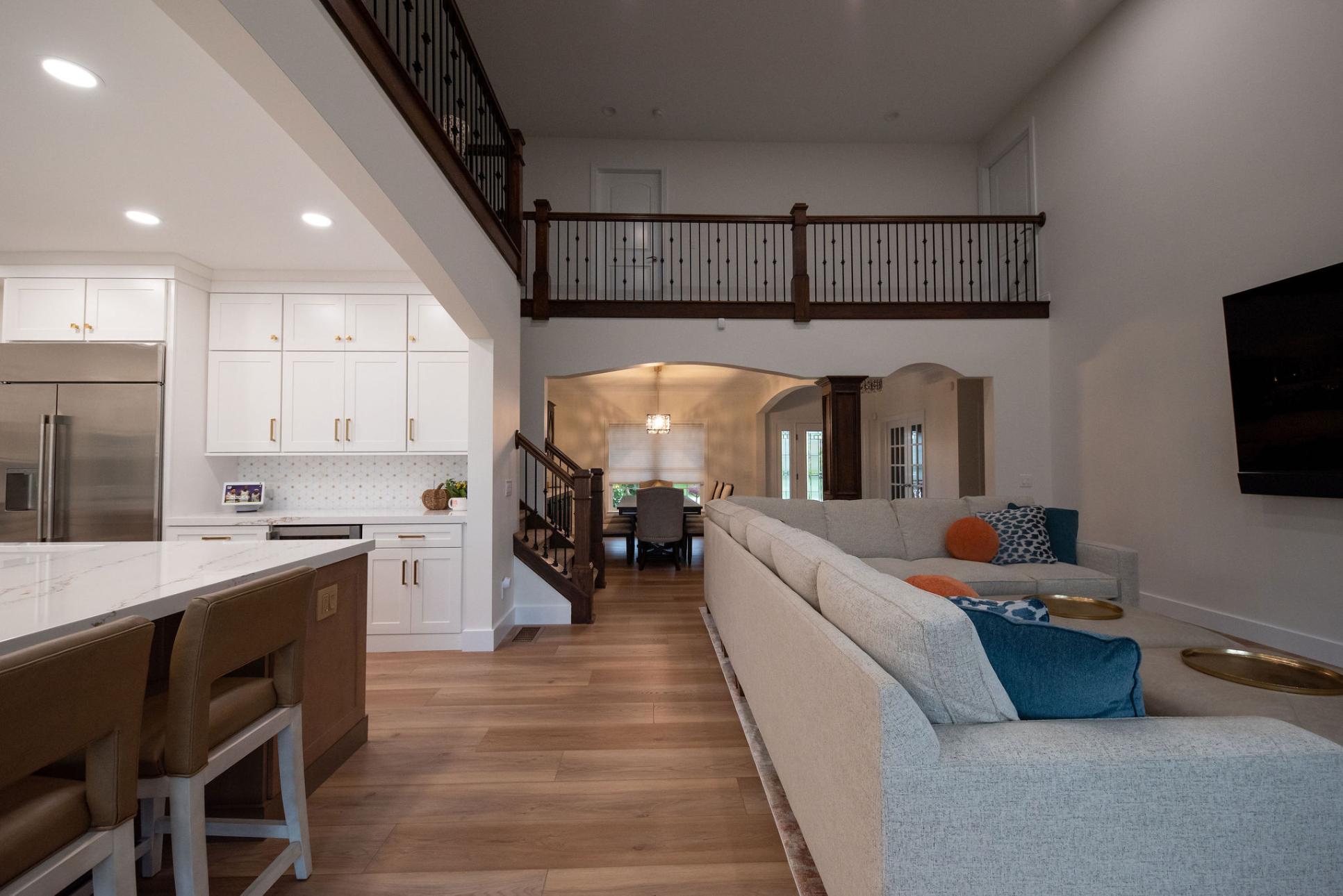 Village Construction proudly presents a captivating transformation, showcasing our recent kitchen remodel and first-floor refresh project. This stunning renovation includes a complete kitchen makeover with modern amenities and aesthetics, complemented by new flooring and fresh paint throughout the first floor. The addition of new trim and recessed lighting illuminates the space, creating a bright and welcoming atmosphere. The fireplace has been given a refreshing touch, and outdated electrical fixtures have been replaced, ensuring both style and functionality. Experience the seamless blend of form and function.