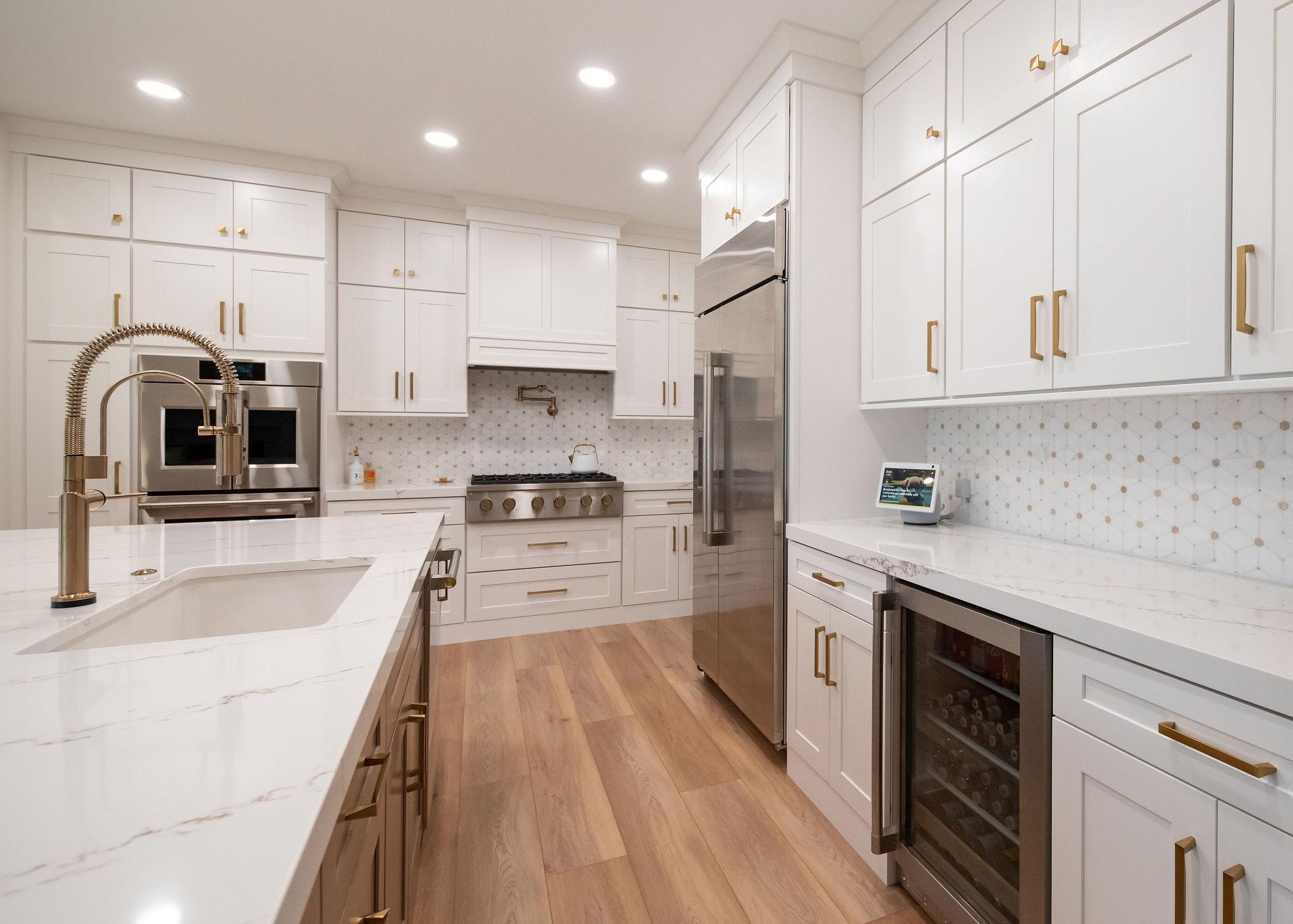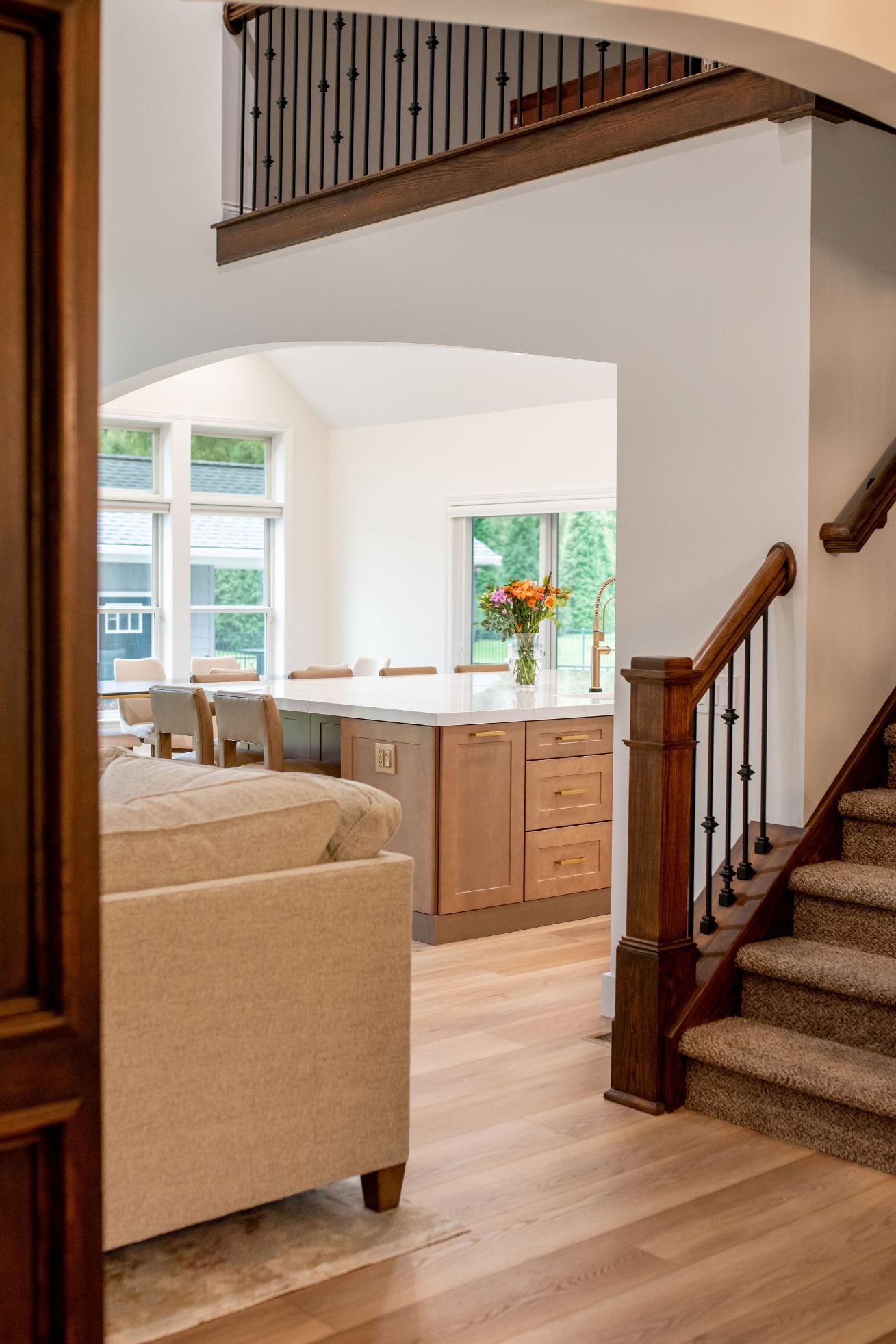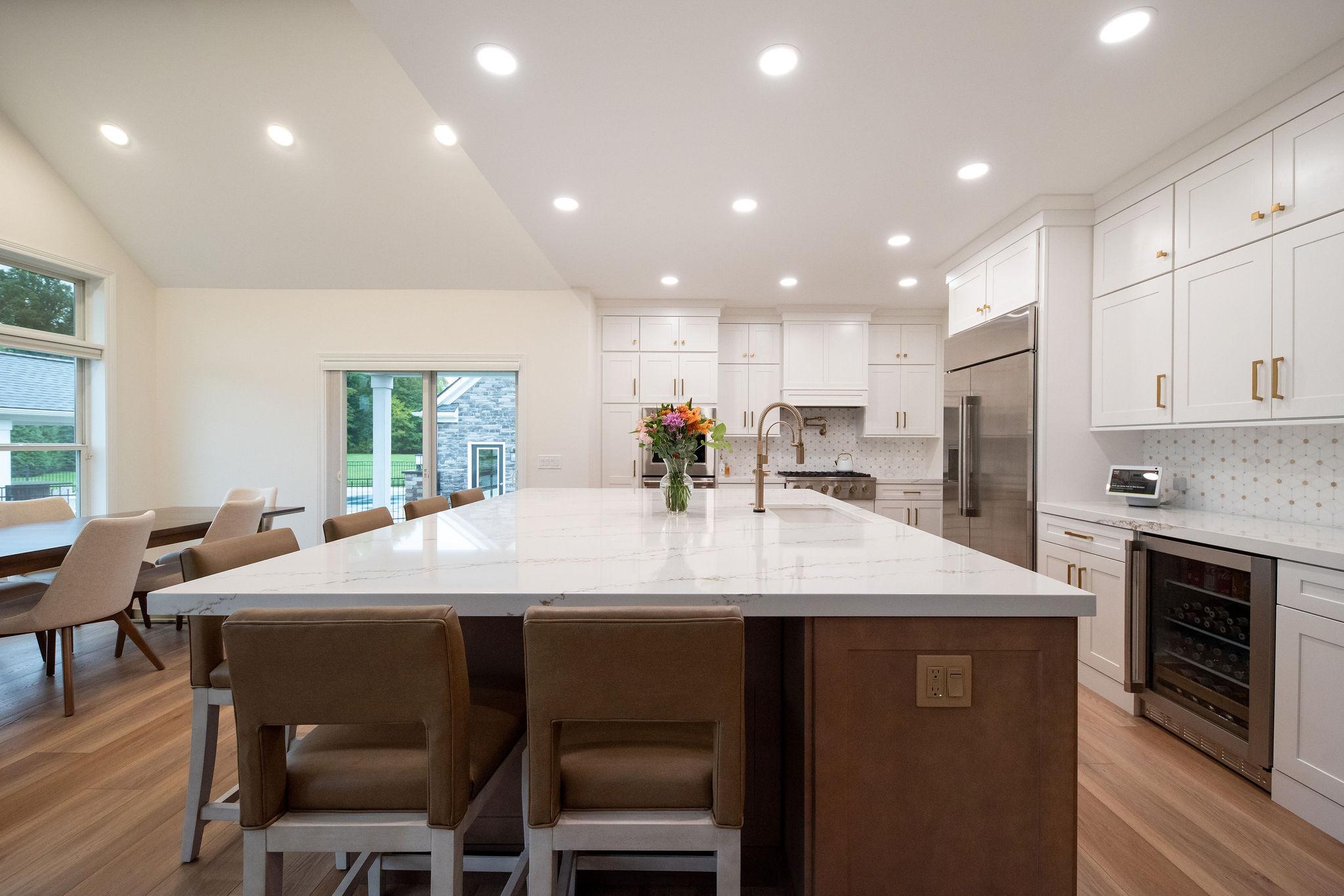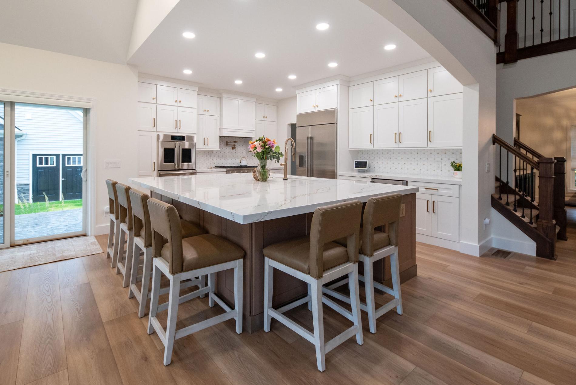 Village Construction proudly presents a captivating transformation, showcasing our recent kitchen remodel and first-floor refresh project. This stunning renovation includes a complete kitchen makeover with modern amenities and aesthetics, complemented by new flooring and fresh paint throughout the first floor. The addition of new trim and recessed lighting illuminates the space, creating a bright and welcoming atmosphere. The fireplace has been given a refreshing touch, and outdated electrical fixtures have been replaced, ensuring both style and functionality. Experience the seamless blend of form and function.