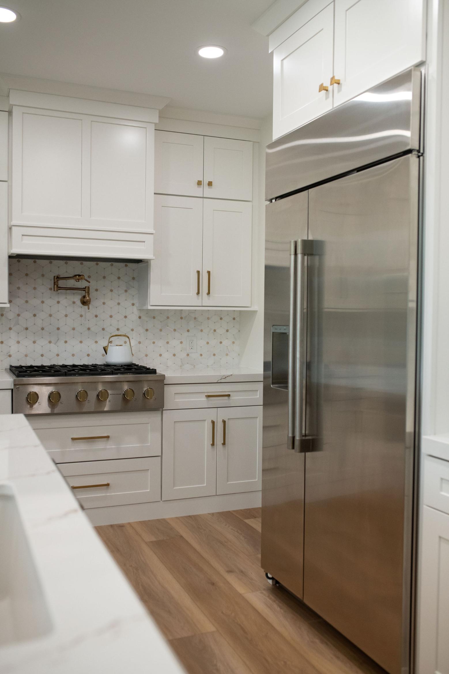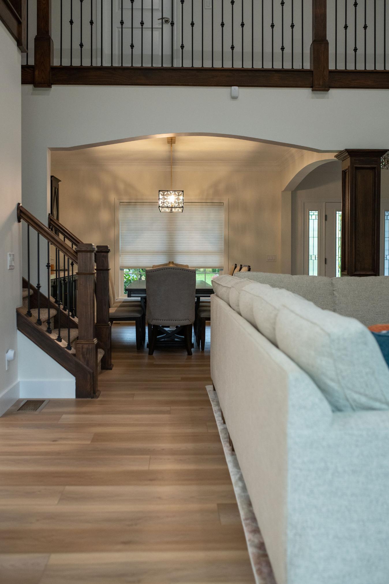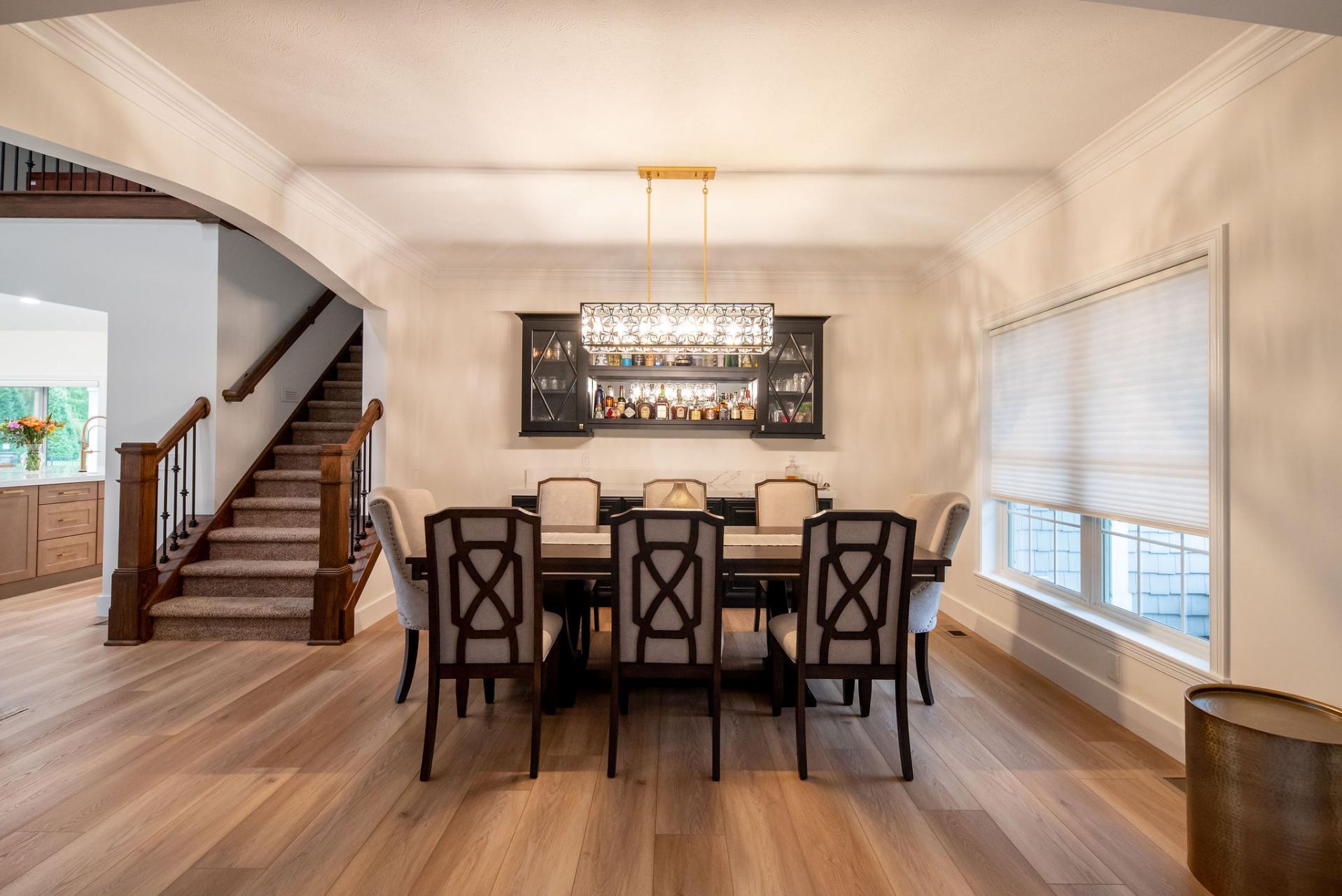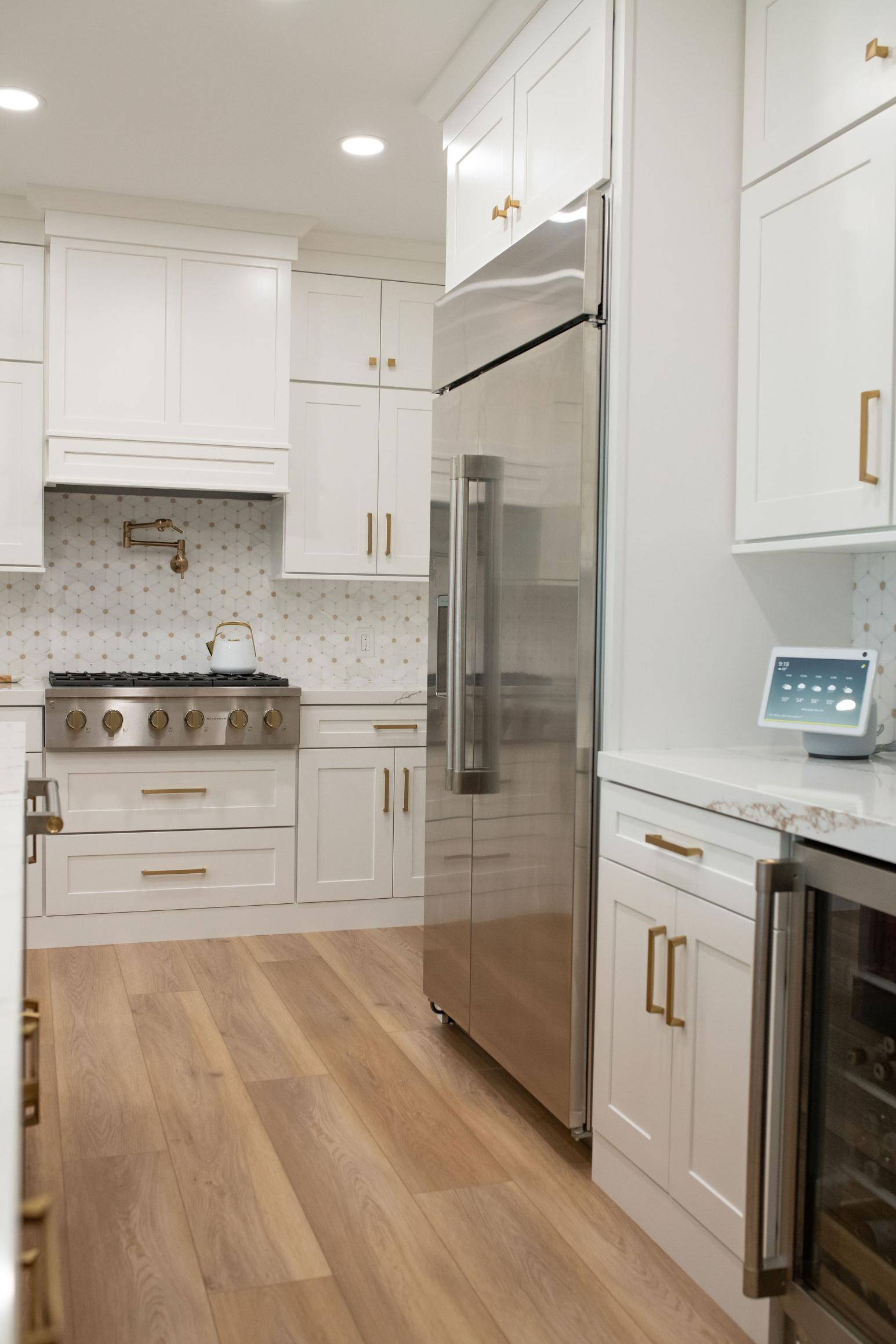 Village Construction proudly presents a captivating transformation, showcasing our recent kitchen remodel and first-floor refresh project. This stunning renovation includes a complete kitchen makeover with modern amenities and aesthetics, complemented by new flooring and fresh paint throughout the first floor. The addition of new trim and recessed lighting illuminates the space, creating a bright and welcoming atmosphere. The fireplace has been given a refreshing touch, and outdated electrical fixtures have been replaced, ensuring both style and functionality. Experience the seamless blend of form and function.
