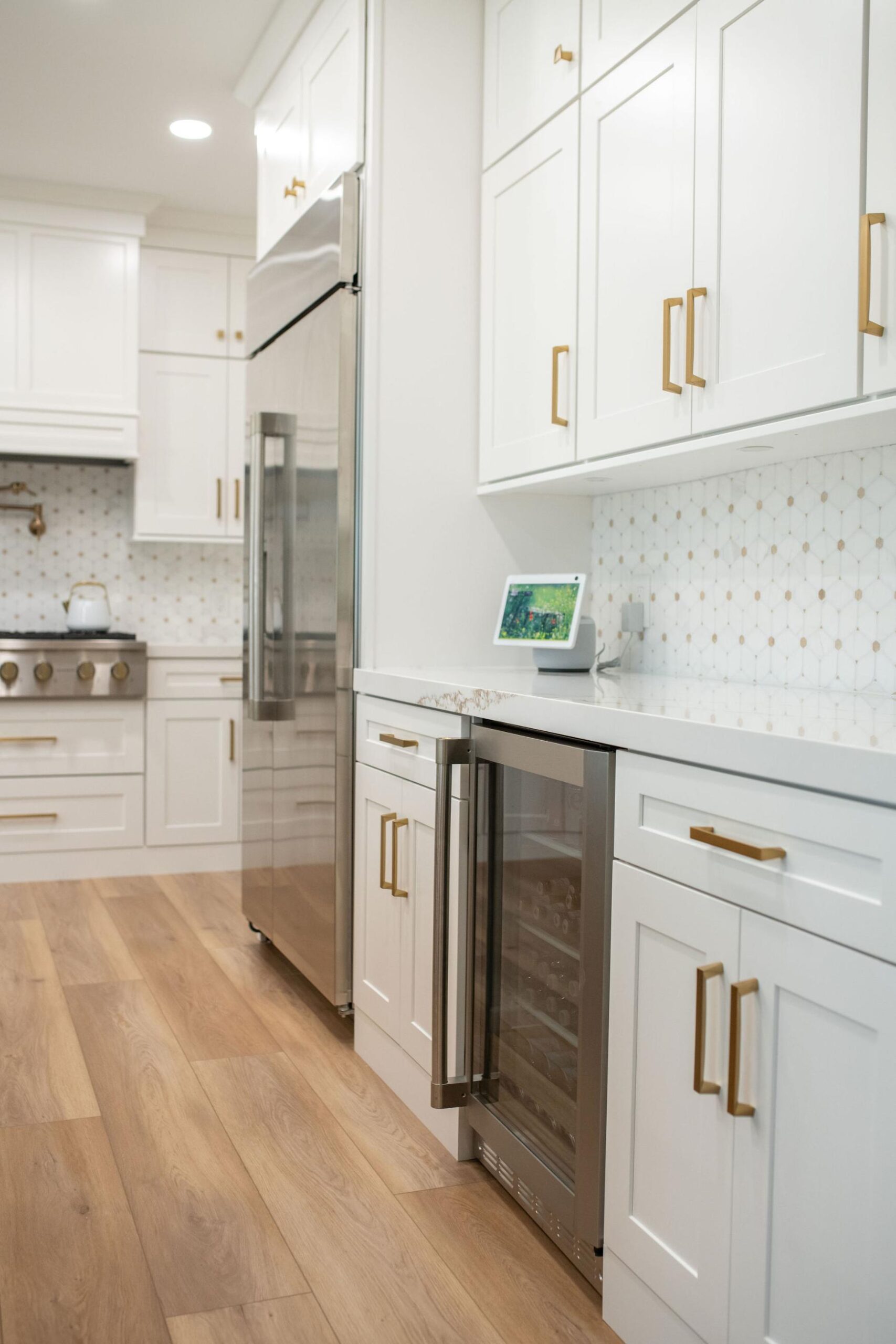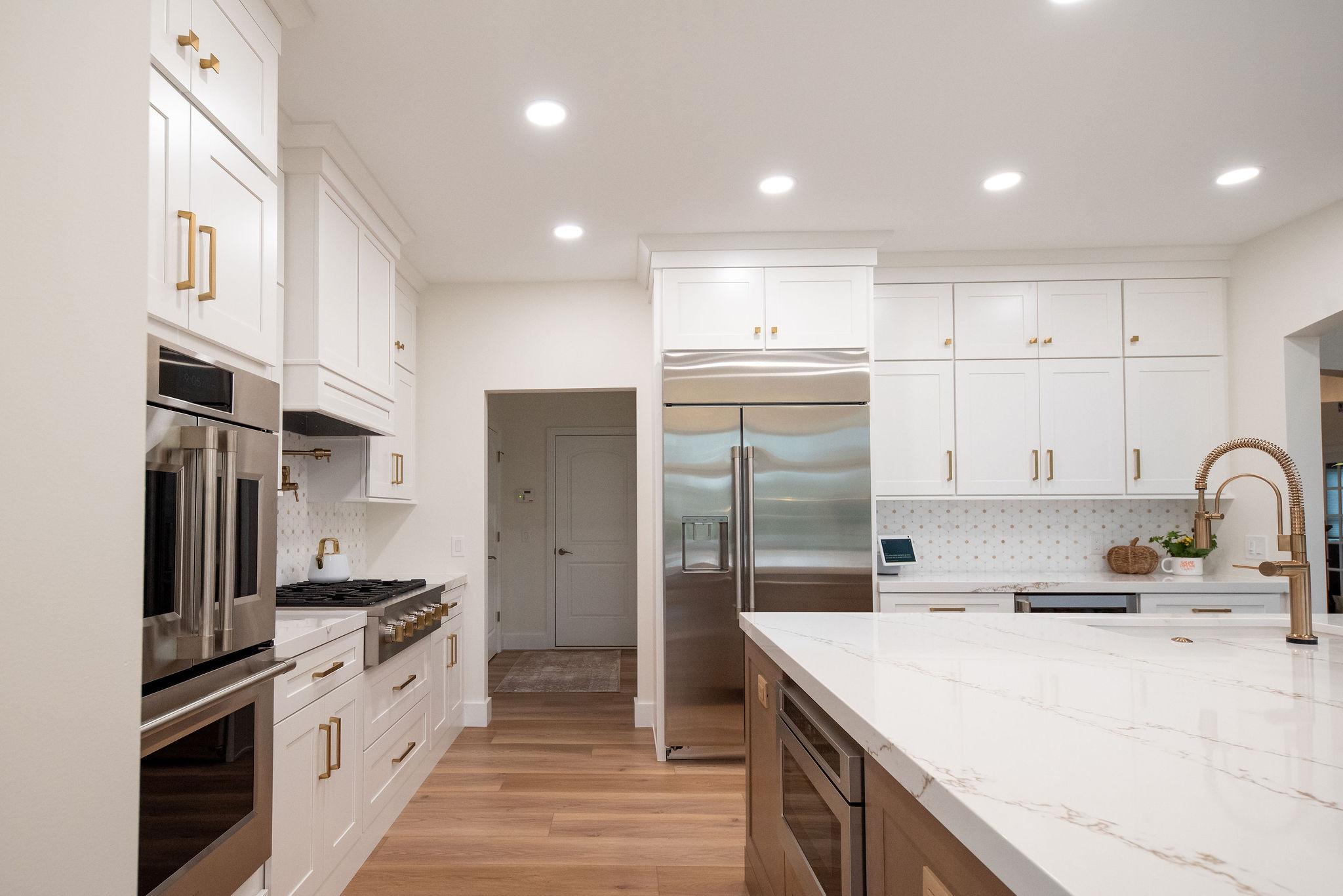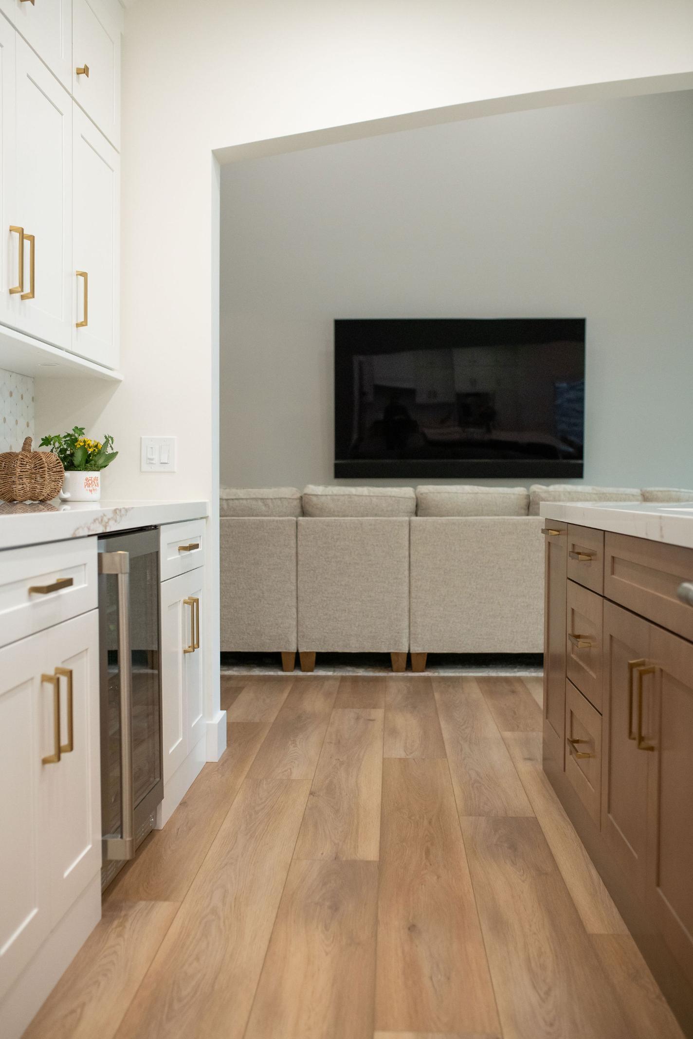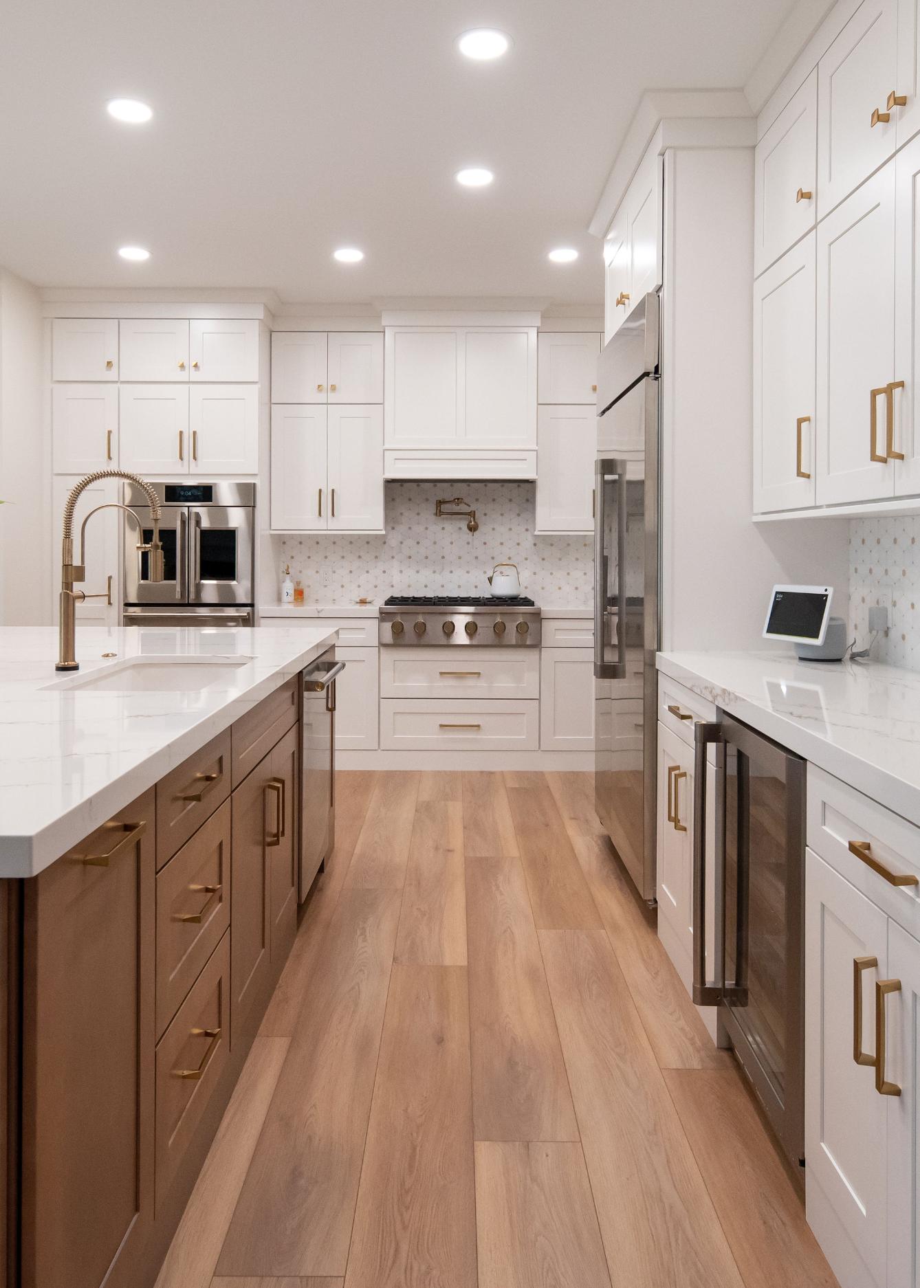 Village Construction proudly presents a captivating transformation, showcasing our recent kitchen remodel and first-floor refresh project. This stunning renovation includes a complete kitchen makeover with modern amenities and aesthetics, complemented by new flooring and fresh paint throughout the first floor. The addition of new trim and recessed lighting illuminates the space, creating a bright and welcoming atmosphere. The fireplace has been given a refreshing touch, and outdated electrical fixtures have been replaced, ensuring both style and functionality. Experience the seamless blend of form and function.